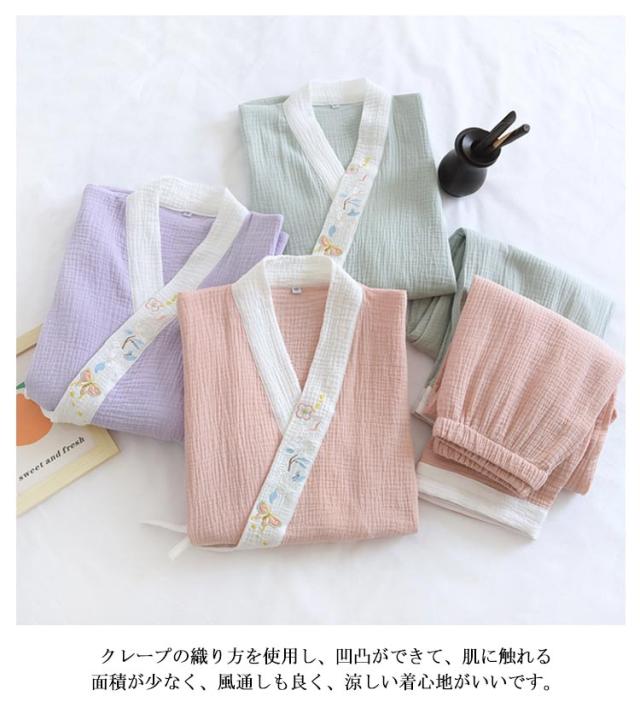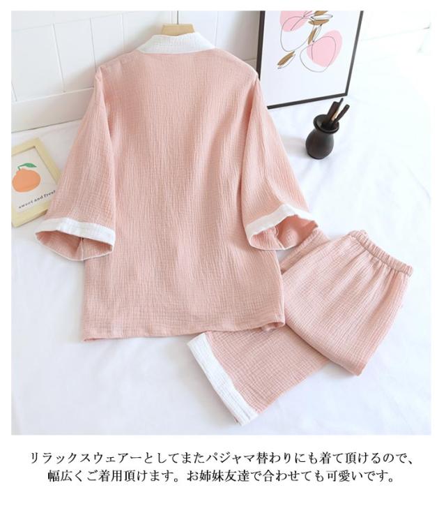 作務衣 夏 ルームウエア 上下セット 春 甚平 パジャマ ワンマイルウエア ギフト 甚平風 綿 二重ガーゼ 入院 甚平レディース レディース 長ズボン 甚平 浴衣 肌に優しい 綿 部屋着 和風 七分袖 和式 母の日 義母 ナイトウエア プレゼント 秋