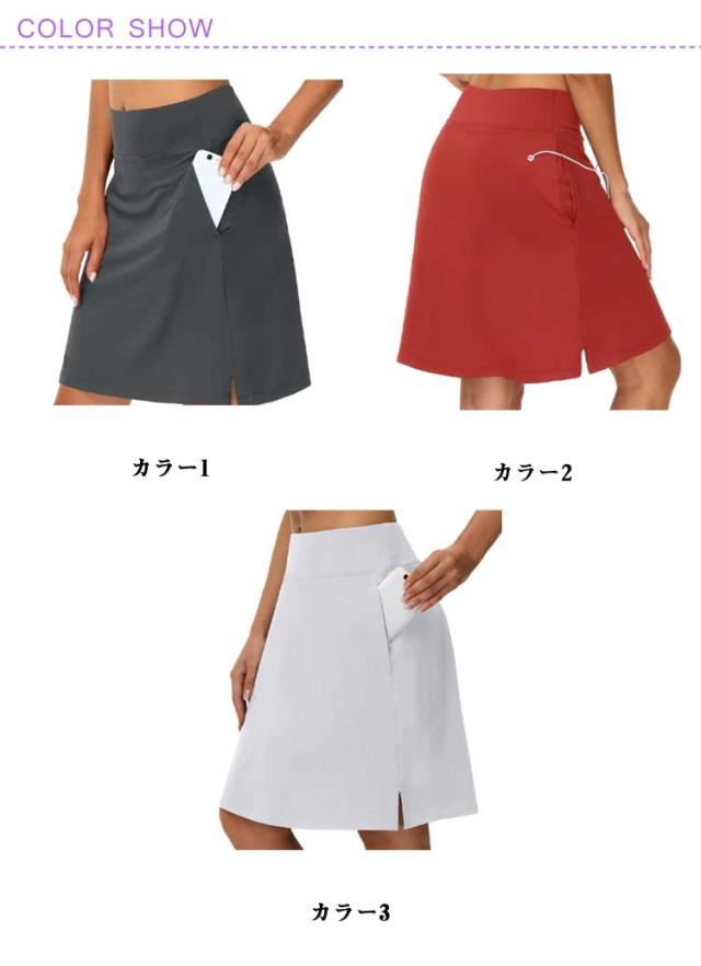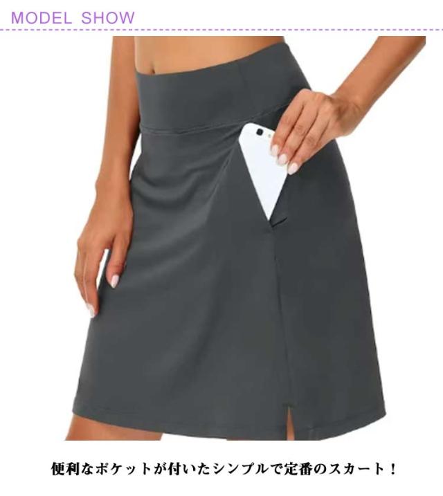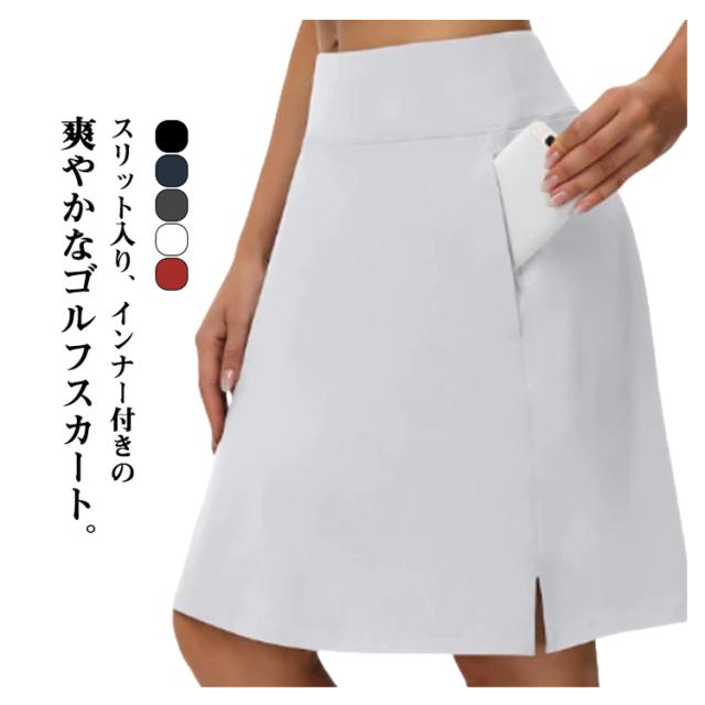 スカート 膝丈 ゴルフウェア ゴルフ 長め 夏 付き レディース ゴルフ スカート テニススカート テニスウェア 丈 インナー インナーパンツ付き ゴルフ テニス ランニング フィットネス トレーニング ヨガウェア 大きいサイズ