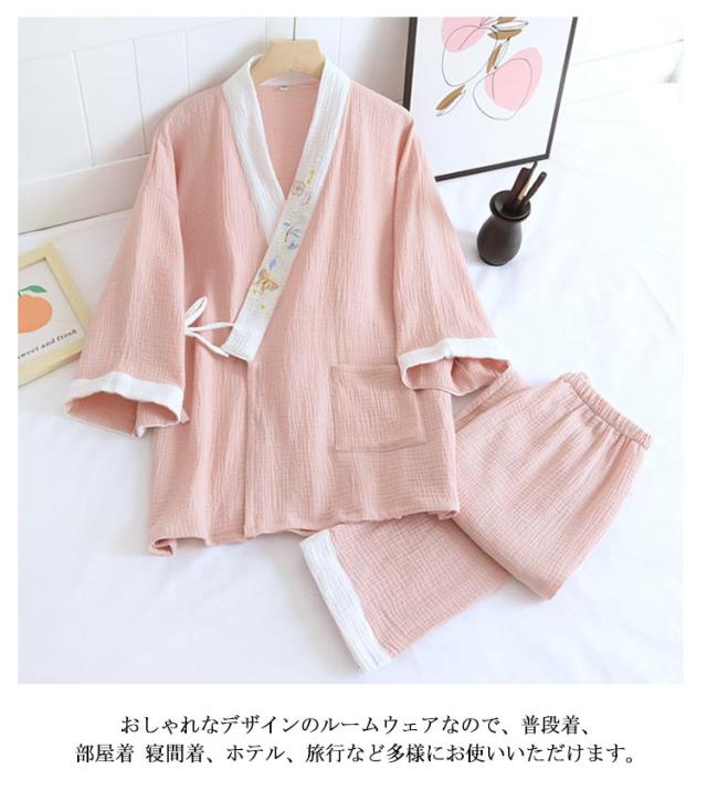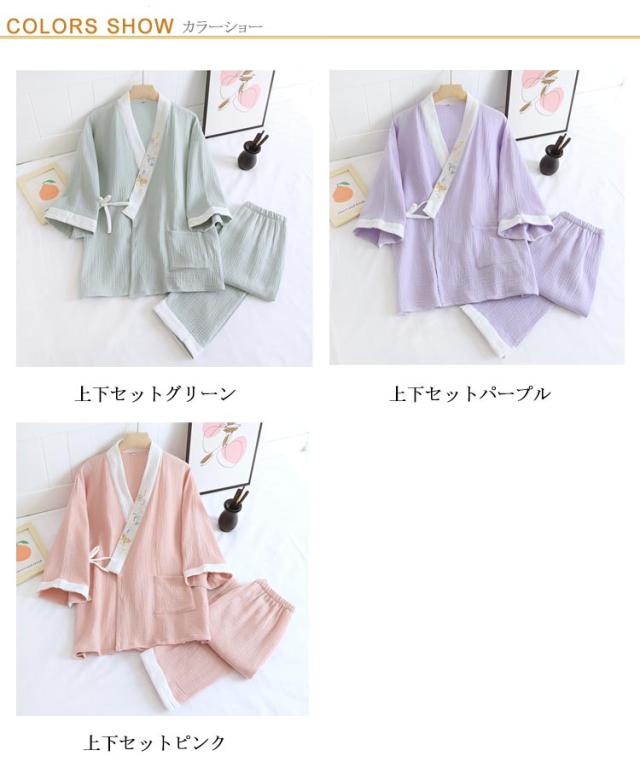 和風 パジャマ 甚平レディース 甚平風 レディース 作務衣 上下セット 浴衣 ルームウエア 義母 ナイトウエア 二重ガーゼ 夏 甚平 七分袖 長ズボン ワンマイルウエア 綿 肌に優しい 綿 入院 部屋着 着物 和式 母の日 春 ギフト プレゼント 秋