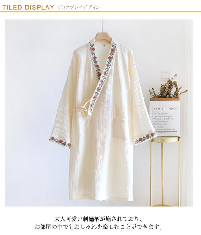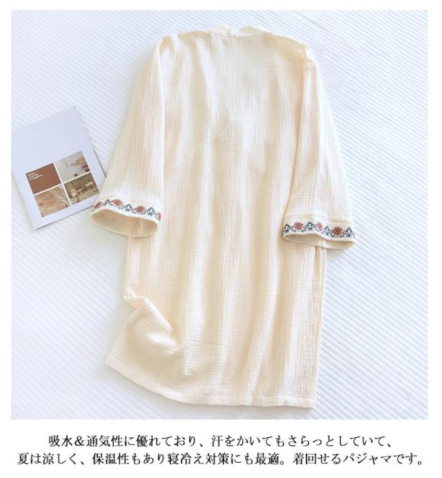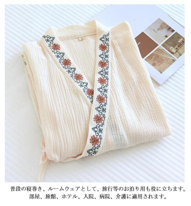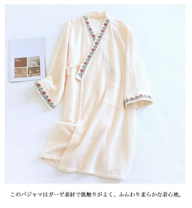 花柄 湯上り 30代 パジャマ 夏 刺繍 春 寝巻き ダブルガーゼ 浴衣 和風パジャマ ワンピース ガーゼ 温泉 ルームウェア バスローブ ルームワンピース 甚平 秋 ナイトウェア 可愛い 部屋着 柔らかい 20代 浴衣 40代 50代