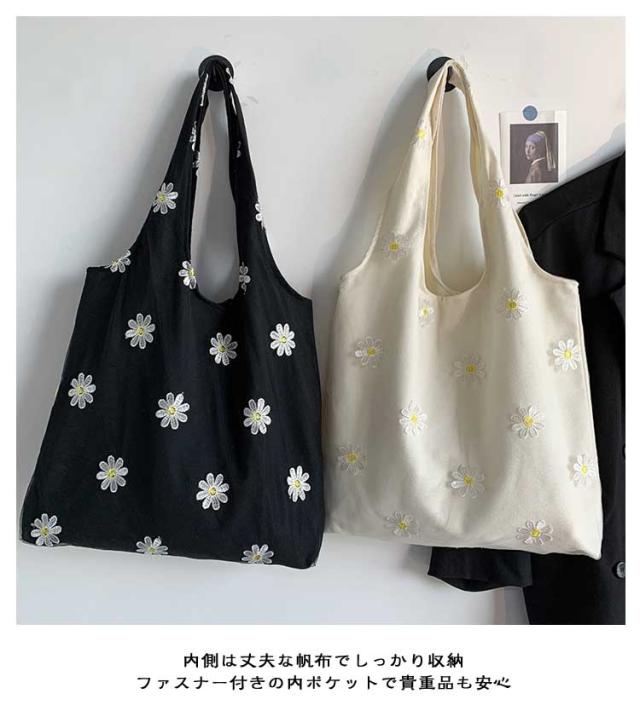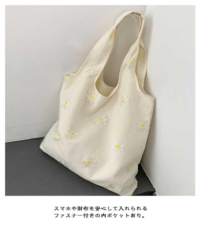 | 繊細な刺繍がポイントの文芸系トートバッグ。涼しげで可愛い印象を与え、夏の装いにぴったり! 内側は丈夫な帆布でしっかり収納◎ ファスナー付きの内ポケットで貴重品も安心 スマホや財布を安心して入れられるファスナー付きの内ポケットあり。 約41cm×36cmのビッグサイズ◎シンプルだけど存在感のあるデザイン 刺繍のミニマルでオシャレな見た目は、洋服にも合わせやすく、コーディネートの幅が広がります。 軽くて持ちやすいのにしっかり頑丈。通学・通勤・お出かけ・旅行…どんなシーンでも活躍します。 | |
