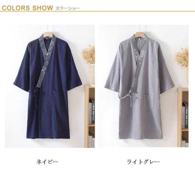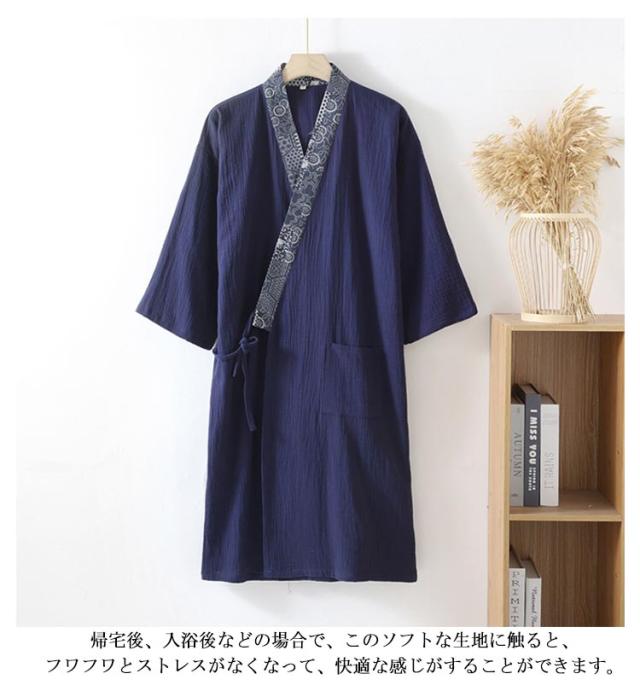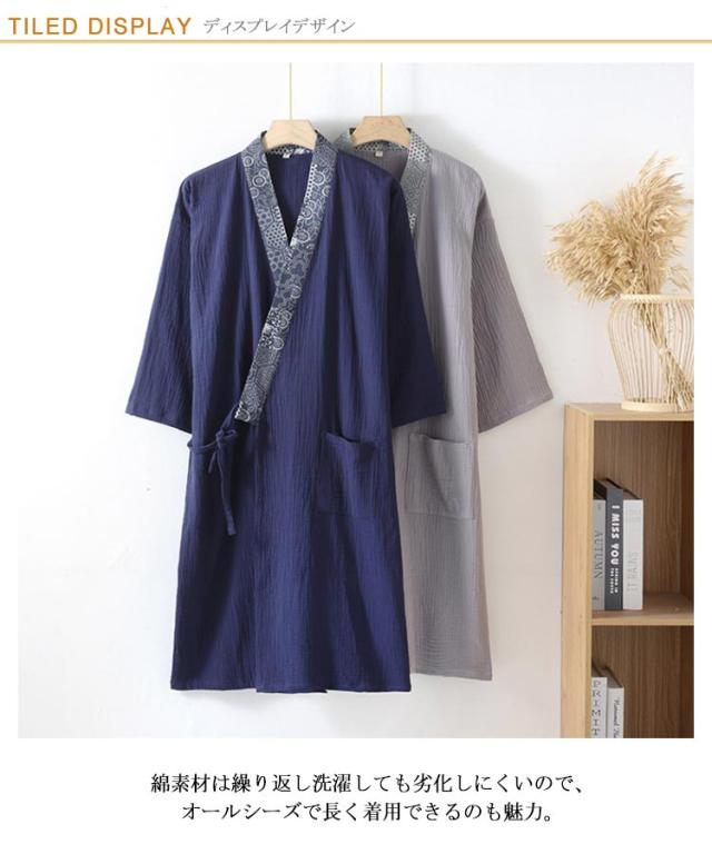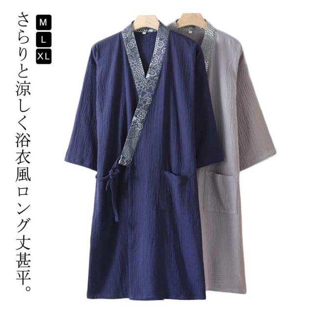 おしゃれ 涼しい 綿 速乾 メンズ 夏 薄手 ロング丈 紳士 羽織 春夏 和風 甚平 寝巻き ルームウェア 湯上がり バスローブ ゆったり 通気性 吸汗 パジャマ リラックス 男性用 浴衣 プレゼント 父の日 敬老の日