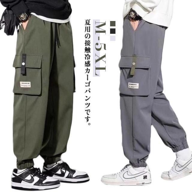 ボトムス カーゴパンツ ひんやり メンズ スリム おしゃれ ゆったり 涼しい 冷感 接触冷感 夏用 カーゴパンツ ジョガーパンツ ロングパンツ 作業着 美脚 ウエストゴム 冷感パンツ 無地 カジュアル 大きいサイズ M L XL 2XL 3XL 4XL 5XL
