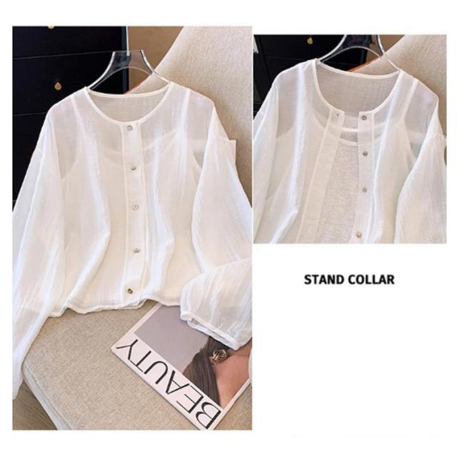 カーディガン UVカット レディース ライトアウター 日焼け対策 UV対策 紫外線対策 サマーカーディガン 羽織り 透け感 冷房対策 ブラウス 襟なし UVカット 長袖シャツ トップス お洒落 シンプル 夏服 体型カバー ゆったり