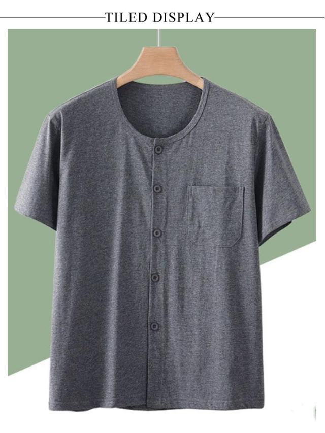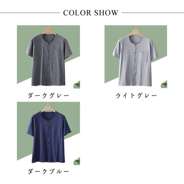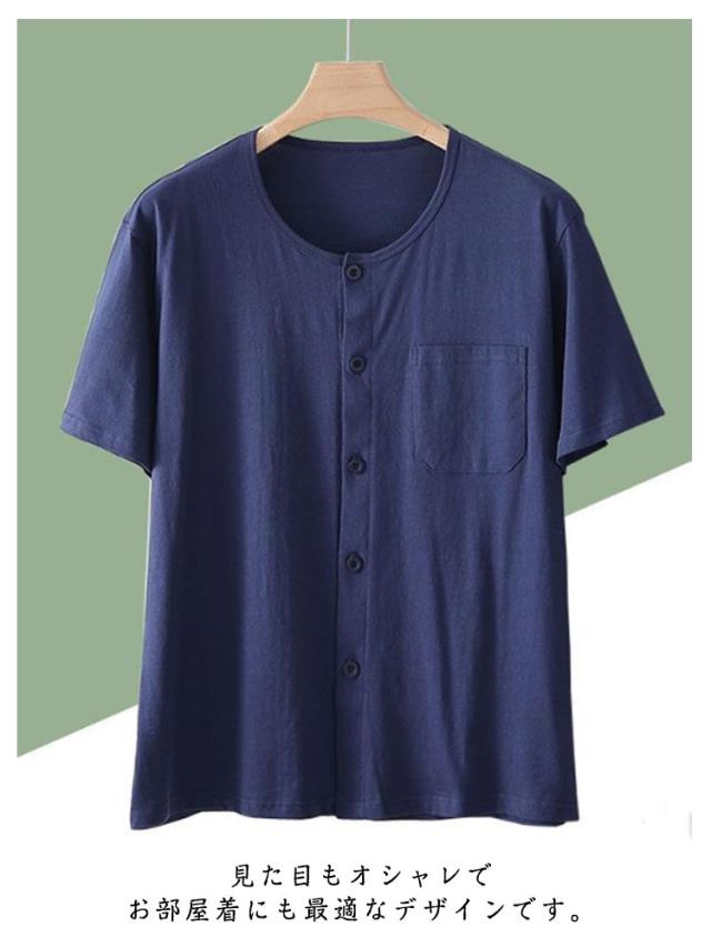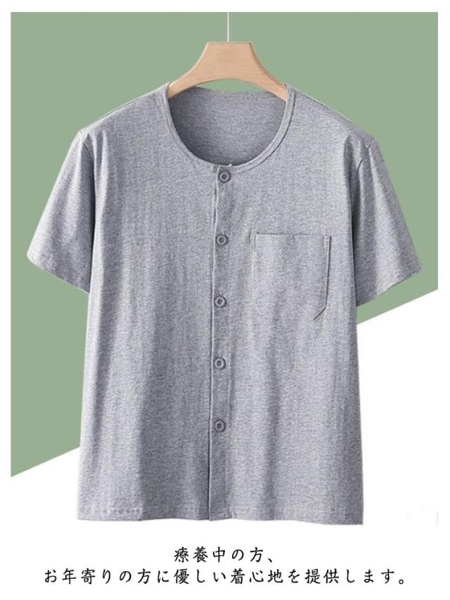 クルーネック カットソー シニア 介護用 手術後 メンズ カーディガン ルームウェア Tシャツ 半袖 インナーシャツ 入院着 パジャマ 綿 トップス コットン 部屋着 男性用 肌着 シニア 下着 前あき 下着