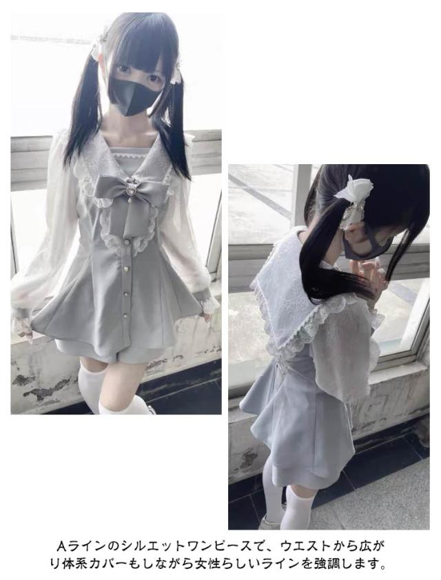| 蝶結び、レースデザインが可愛い地雷系女子の雰囲気を醸し出すミニワンピース。【インナーパンツ付き】【S-XL】 腕の透け感あるレース素材が目を引く、華やかで存在感のあるミニワンピ Aラインのシルエットワンピースで、ウエストから広がり体系カバーもしながら女性らしいラインを強調します。 シンプルなデザイン、実用でファッション感が溢れる一着で、かわいい女の子が似合います。 さらりとした素材はイージーケアで、シワになりにくく、Aラインのディザインとミニ丈の組み合せ、リボンデザインが体型を隠し、同時にスリムなシルエットを演出します。 | |