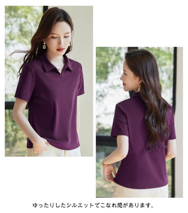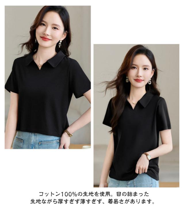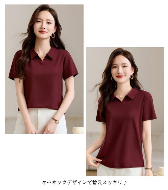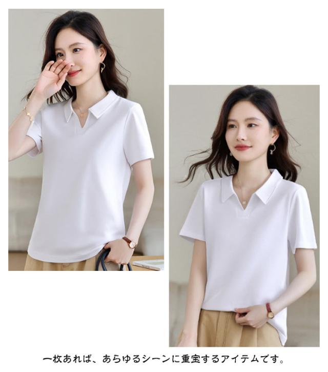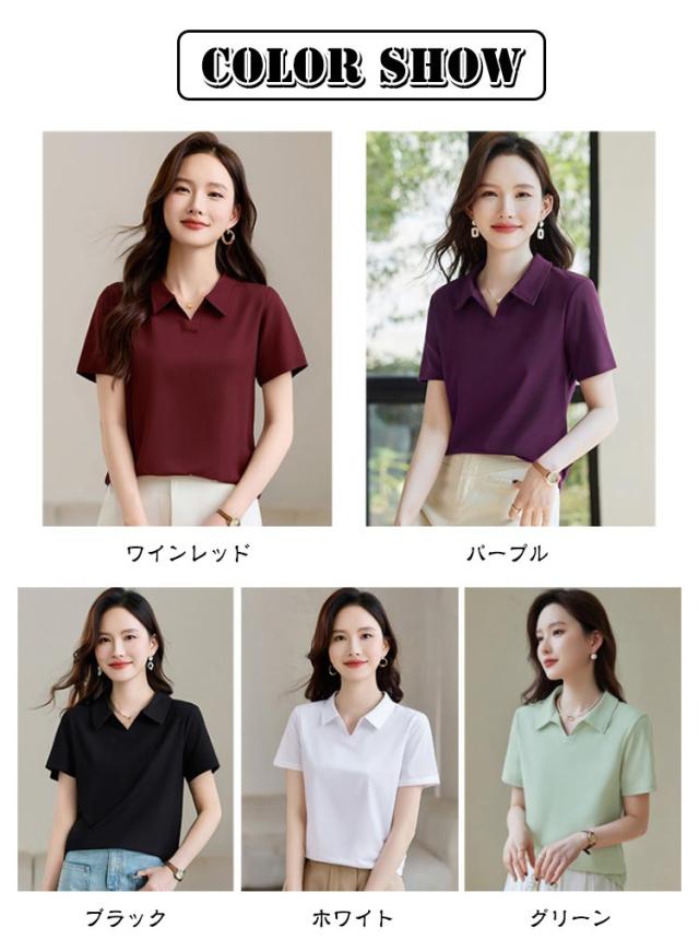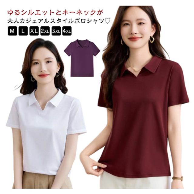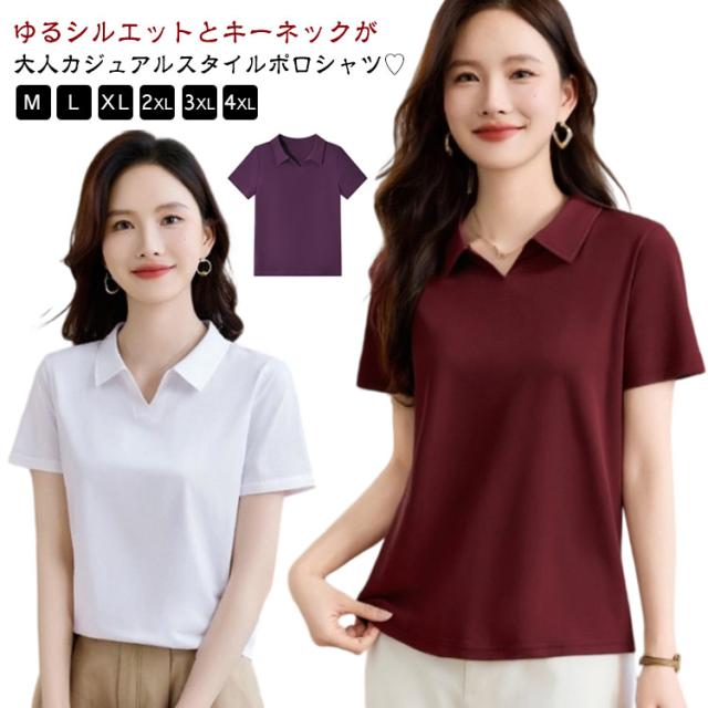 キーネック 50代 大きいサイズ 半袖 レディース tシャツ 夏 体型カバー トップス 春 ゆったり 半袖 ポロシャツ 無地 シンプル 半袖 ブラウス 薄手 20代 カットソー 30代 40代 トップス 60代 通勤 お出かけ カジュアル おしゃれ 半袖ポロシャツ 白 黒 グリーン 緑