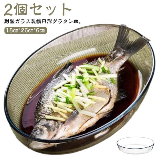 透明 丸 耐熱ガラス 耐熱 26cm オーバル 楕円 大皿 ガラス 食洗機対応 焦げ付かない グラタン皿 グラタン皿 皿 深い 2個セット ガラス皿 オーブン皿 オーブン料理 グリル料理 お菓子作り 焼き菓子 製菓 洋食器 電子レンジ対応 おしゃれ シンプル