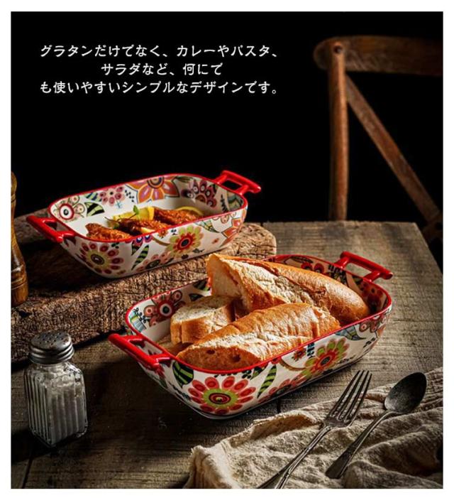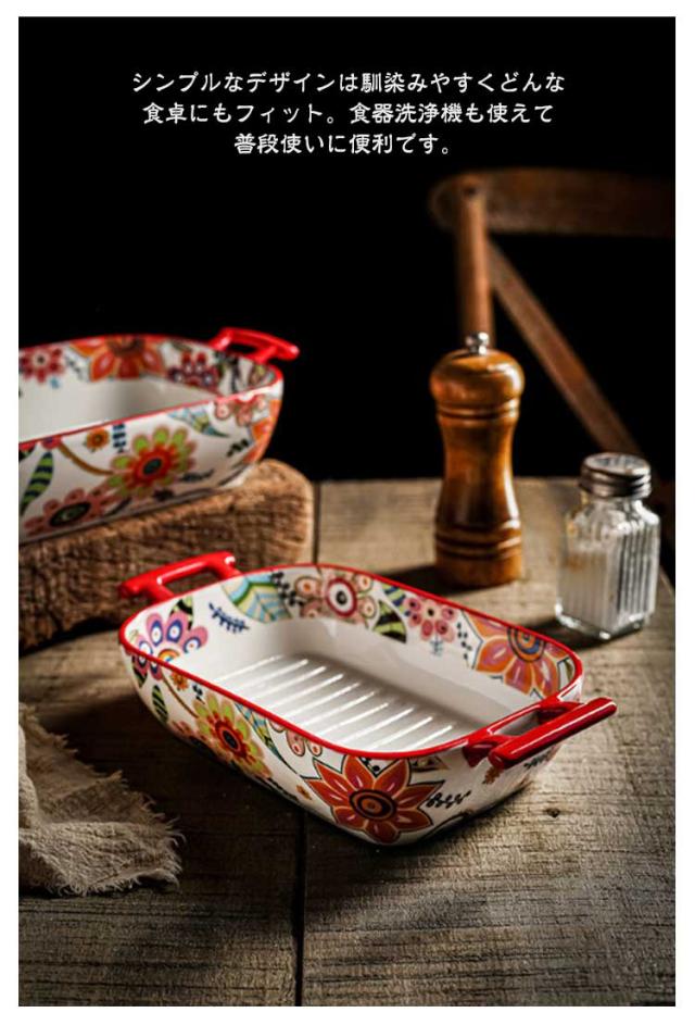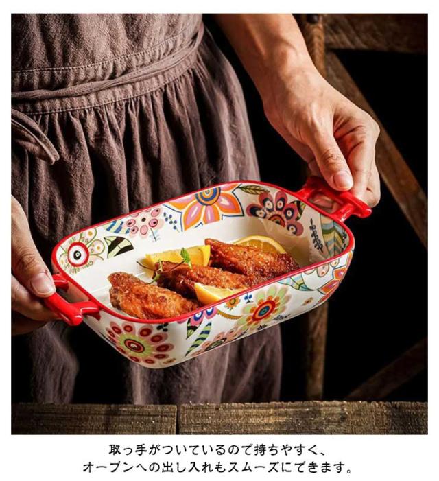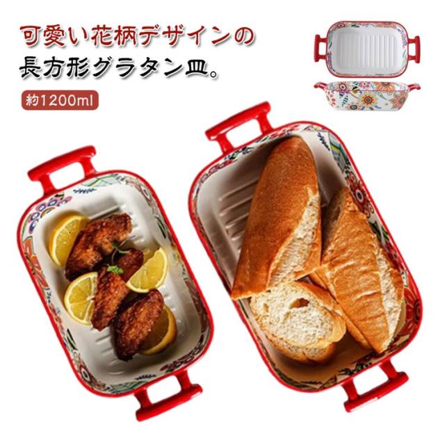 陶器 長方形 1200ml グラタン皿 850ml 北欧 花柄 食洗機対応 カラフル オーブン料理 おしゃれ 皿 大皿 お皿 L 大きい 深い 耐熱 耳付 製菓 角型 長角 オーバル グリル料理 お菓子作り 焼き菓子 グラタン皿 洋食器 電子レンジ対応 オーブン対応