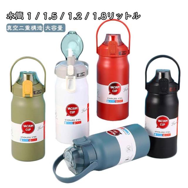 1200ml 1.5リットル 蓋つき 保温 洗いやすい 水筒 ストロー付き 魔法瓶 保冷 1800ml 1500ml 1.8リットル 大容量 1000ml 保温ボトル ふた ハンドル付き スポーツ ステンレスボトル 直飲み 真空二重構造 1l 軽量 キッズ こども 大人 運動 旅行 通勤 通学 シンプル