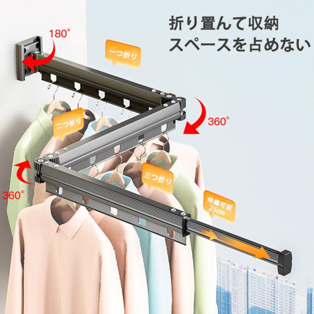 【省スペース】: 使わないときは折りたたんで収納でき、回転・伸縮可能で使いやすいし、屋内でスペースをとらない利点があります。