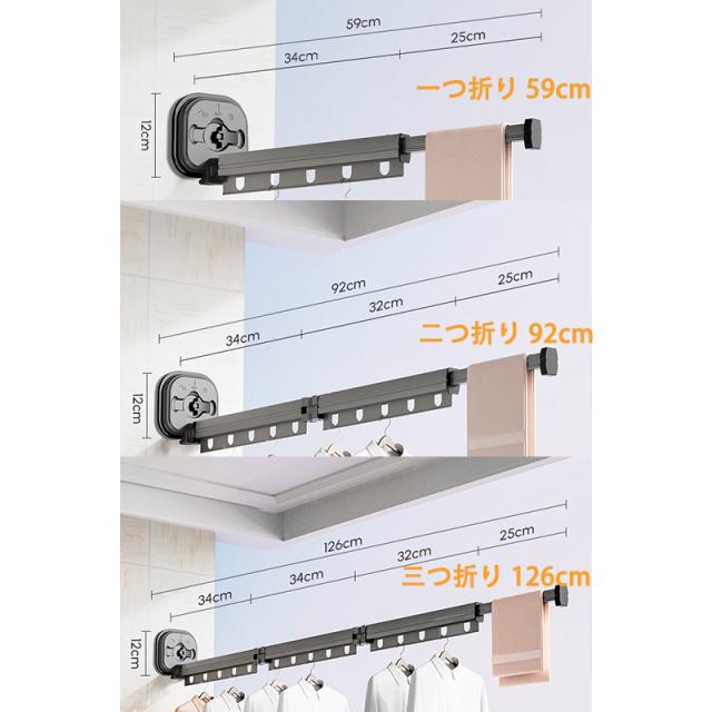【 伸縮壁掛け物干しハンガー】: 約50kgの耐荷重ありますので、布団など重いものを干すことも問題ありません。宇宙アルミニウムから作られたもので、さびにくく、耐摩耗性に優れ、耐久性に優れています。