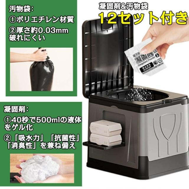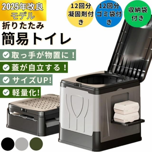 \改良版/ 簡易トイレ 凝固剤 防災トイレ ポータブルトイレ 防災グッズ キャンプ 渋滞 にも使える 軽量 折畳み式 携帯 トイレ 洗えるプラスチック製 耐荷重150kg 仮設 防災 トイレ 防災 非常用 災害用 地震 津波 送料無料
