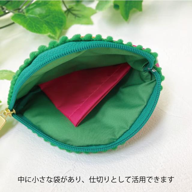 小さな仕切りポケットがついた、手のひらサイズのミニポーチ♪
