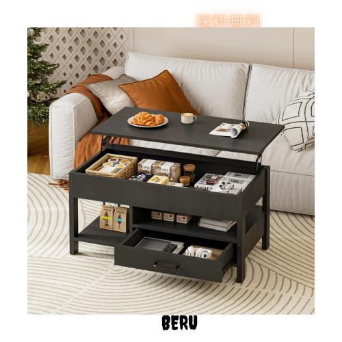 IKIFLY ローテーブル 昇降式 木製 コーヒーテーブル 引き出し付き テーブル 収納付き センターテーブル 大容量収納リビングテーブル 高さ