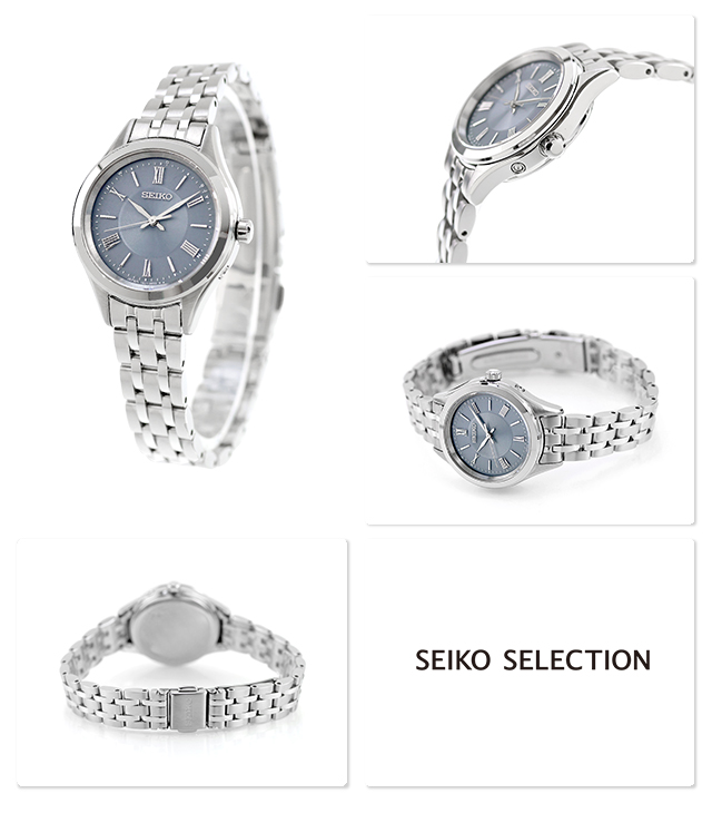 正規品 7年保証キャンペーン 送料無料 セイコーセレクション Sシリーズ ペア 日本製 レディース 腕時計 SSDY049 SEIKO SELECTION アナログ ブルーグレー ◆SEIKO SELECTIONから提案するエレガント電波ソーラーペアの決定版。スタンダードで質感の高いデザインのペアモデルです。使い心地の良さと視認性を確保。ダイヤルは、ベースの仕上げ分けを行い、上品で上質な質感に。内側は強い光沢感で高級感を放ち、外側は柔らかい光沢感で視認性を向上、角度により美しく表情が変わる程よい輝きを実現しました。繊細さと立体感が両立したインデックスで、シーンを選ばず使いやすいすっきりとした印象ながらも、高級感を演出しています。ケースからバンドにかけてのラインが美しく、軽やかな装着感を実現する質感の良い裏つなぎ無垢バンドを採用しています。記念日やお祝いのギフトとしても最適です。 発売日:2025年7月発売