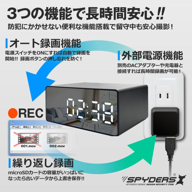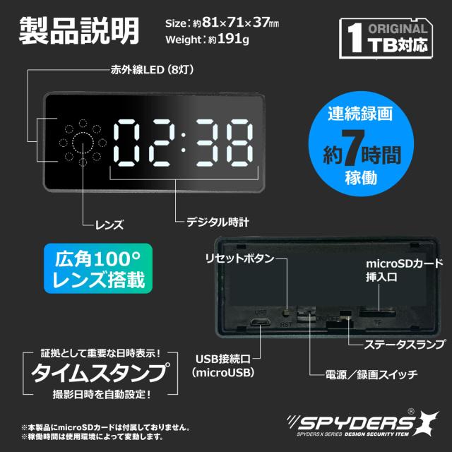 スパイダーズX スパイカメラ 1080P 置時計型カメラ 小型カメラ [C-509] 防犯カメラ Wi-Fi ネットワーク接続 赤外線ライト 暗視補正 1TB対応