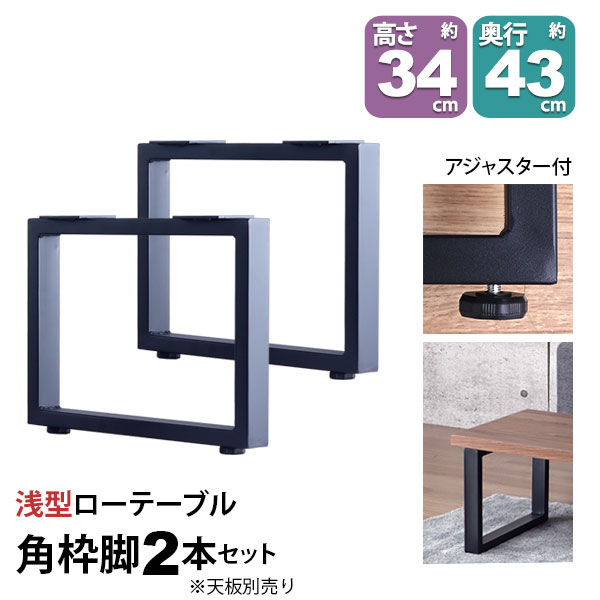 浅型ローテーブル 角枠脚2本セット 高さ約34cm 奥行約43cm アジャスター付(※天板別売り) の説明