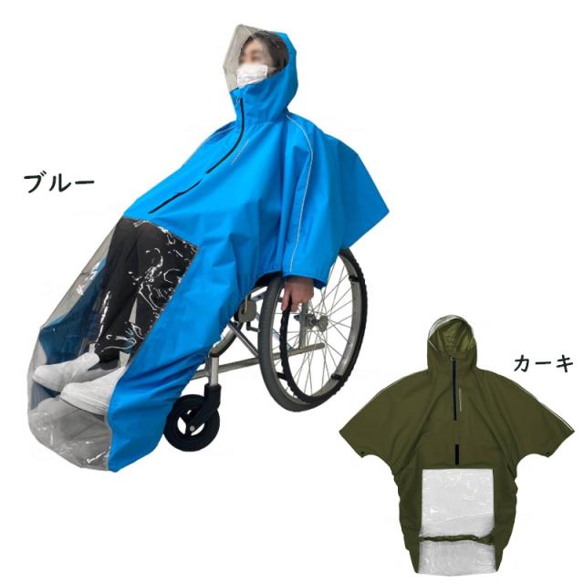 車いすレインはおるっちゃ ポンチョタイプ KS-002 ブルー・カーキ 1点 フリーサイズ 弘進ゴム 車椅子用レインコート