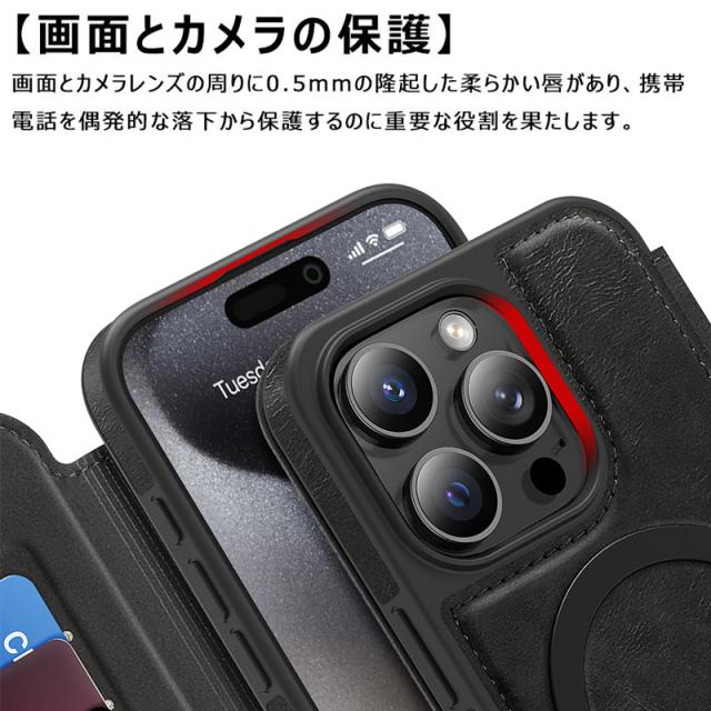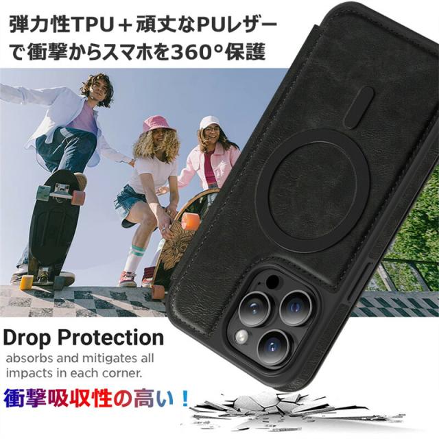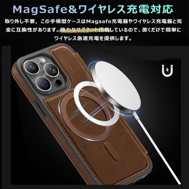 ○【Magsafe対応】取り外し不要,この手帳型ケースはMagsafe充電器やワイヤレス充電器と完全に互換性があります。強力なマグネット搭載しているので、置くだけで簡単にワイヤレス急速充電を提供します。