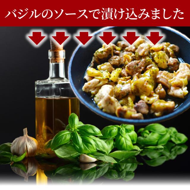 バジル & ガーリック こりこり 親鶏 500g(100g×5) おつまみ 酒の肴 珍味 鶏 親鳥 送料無料 国産 地鶏 おかず 惣菜 簡単調理 レンジ 湯せん アヒージョ 肉 にんにく