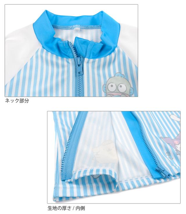 【メール便送料無料】サンリオキャラクターズ 長袖 ラッシュガード 水着 キッズ 女の子 110 120 130 3234002 sanrio ポチャッコ ポムポムプリン クロミ マイメロディ シナモロール ハンギョドン タキシードサム 子ども 女児 ストライプ 白 青 ホワイト ブルー sw3654