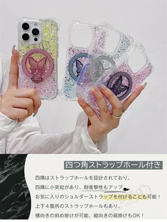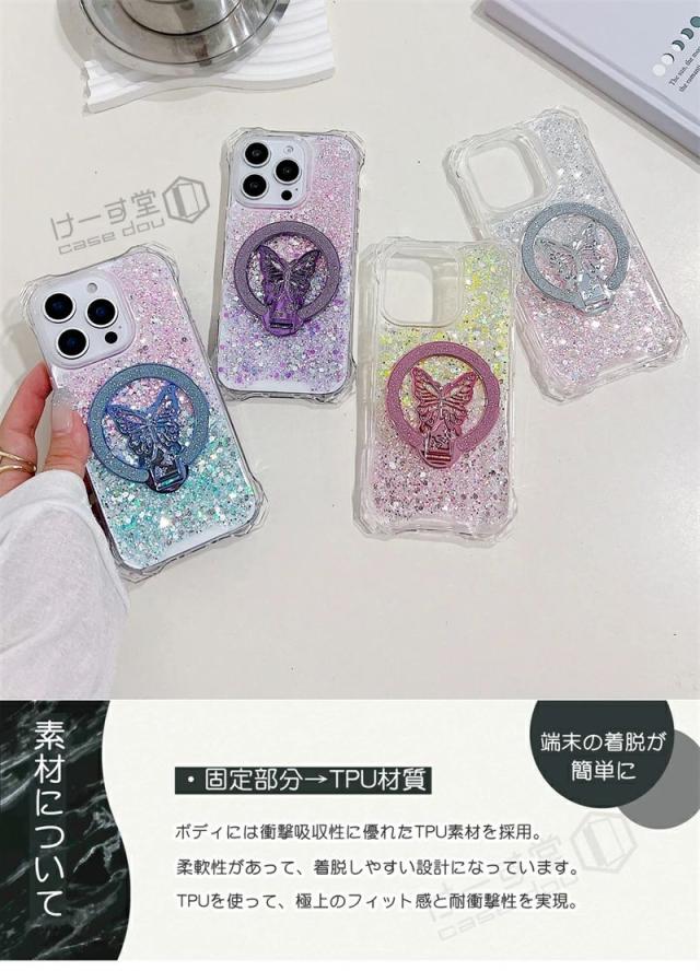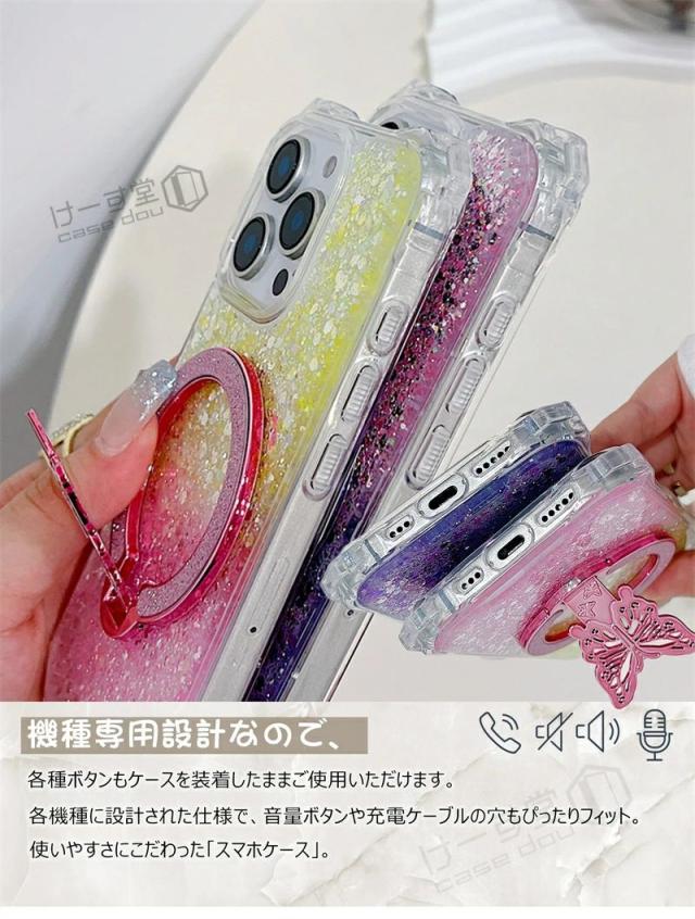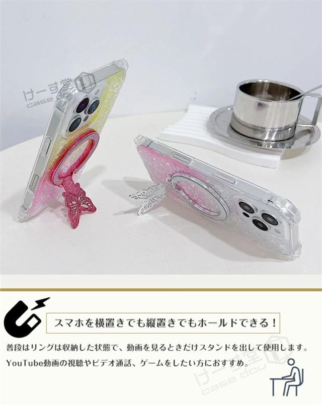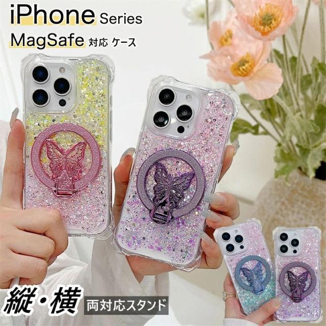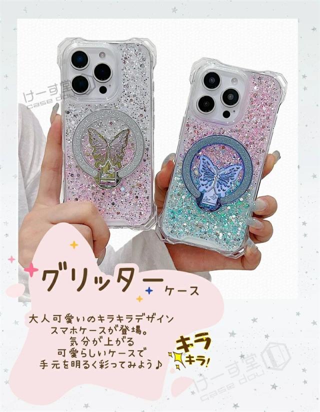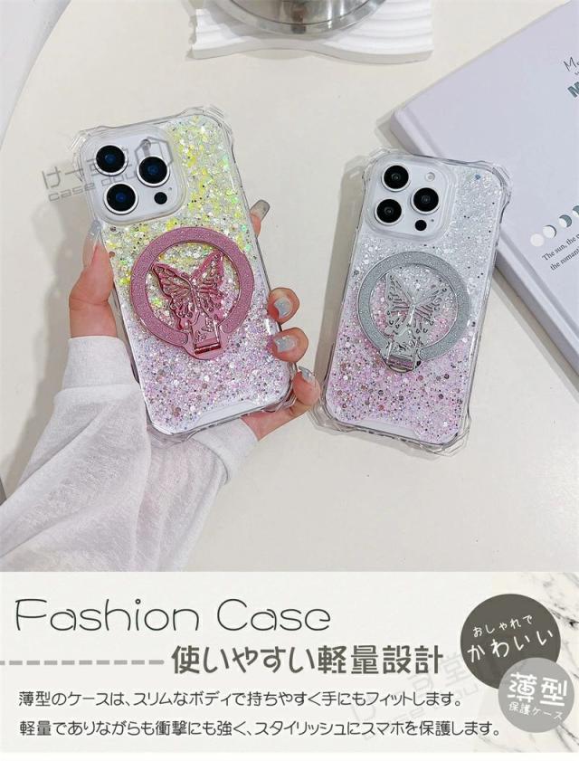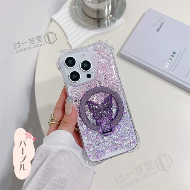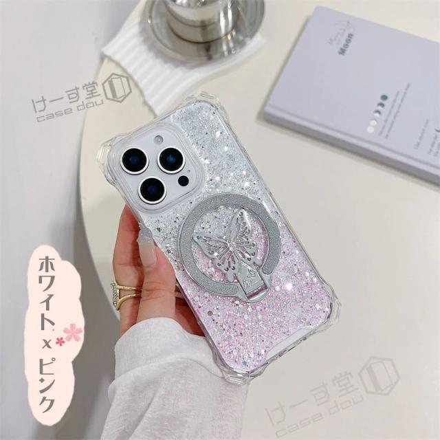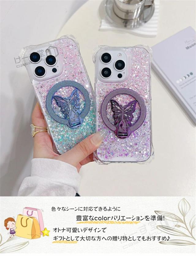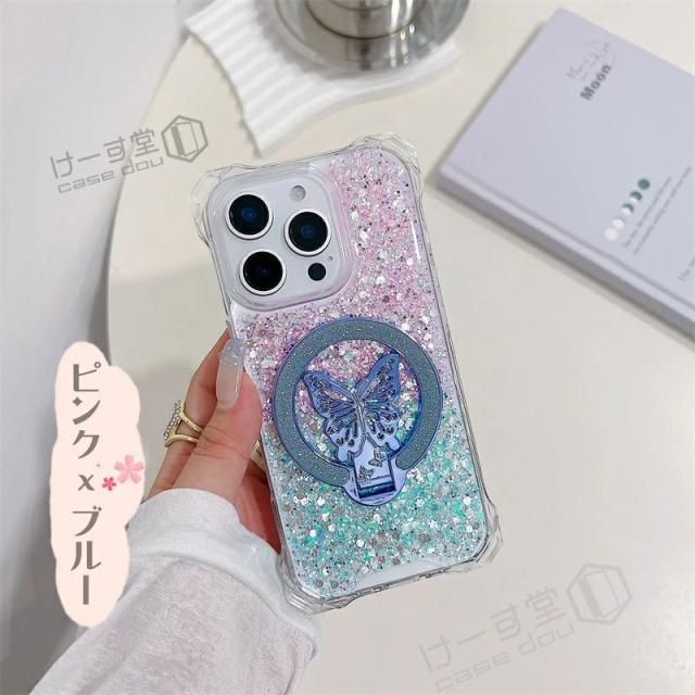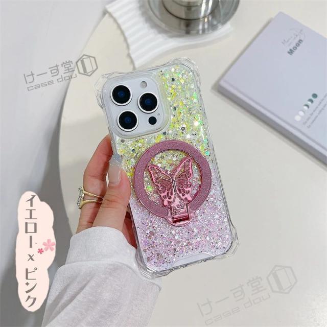 iPhone16 ケース 蝶のスタンド付き ケース iPhone16Promax iPhone15 iPhone14 韓国スマホケース iPhone13 Pro iPhone12 ProMaxiPhone11 ケース アイフォン 16 15 14 13 12 スマホケース 耐衝撃 きらきらラ グリッター magsafe iPhoneケース グラデーション