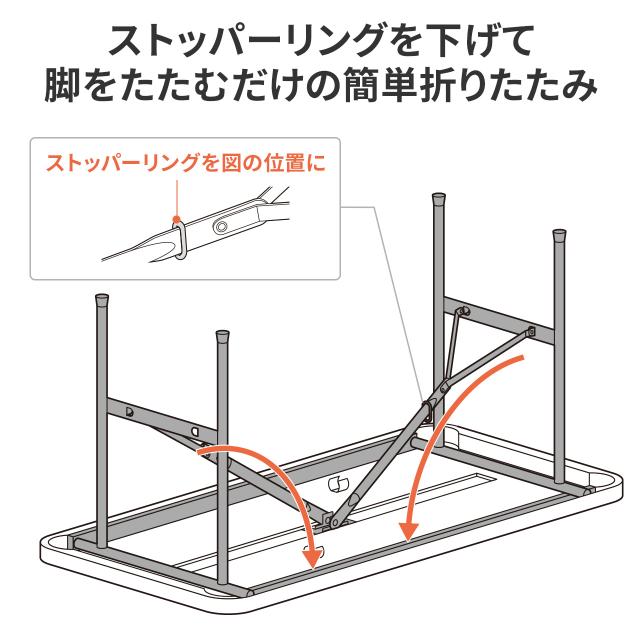 折りたたみテーブル 折りたたみデスク ミーティングテーブル 樹脂天板 屋外 軽量 幅122cm×奥行61×高さ74cm[100-FD027W]