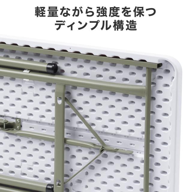 ⇒ご購入の前にご確認下さい水や油をはじく折りたたみ式の樹脂製天板テーブル。コンパクトに折りたたんで省スペースに収納可能。屋内外どこでも使うことができるデスク。イベントに最適なテーブル。持ち運びしやすい軽量仕様。届いてすぐに使える完成品でのお届け。【WEB限定商品】