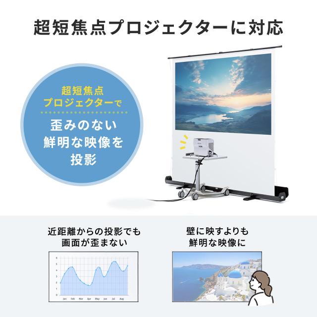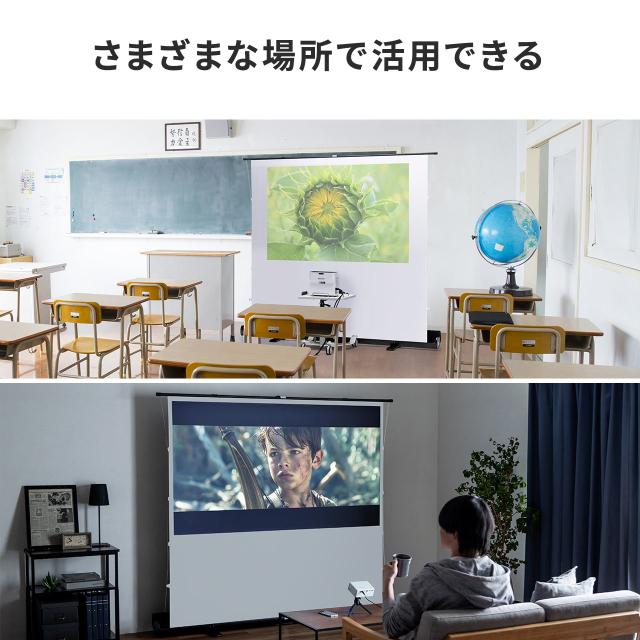 プロジェクタースクリーン 80インチ 自立式 超短焦点対応 床置き 4K フルHD 大型 簡単設置 ホームシアター 防炎 パンタグラフ 16:9 枠なし[100-PRS025]