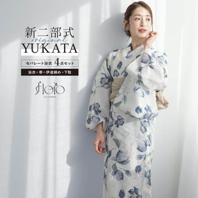 SOUBIENのプライベートブランド『floro by SOUBIEN』(フローロ)の女性用セパレート浴衣4点セットです。