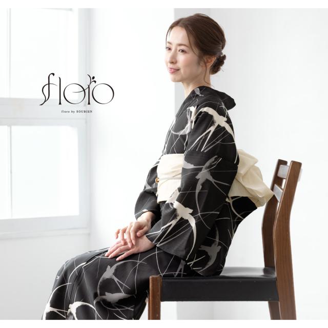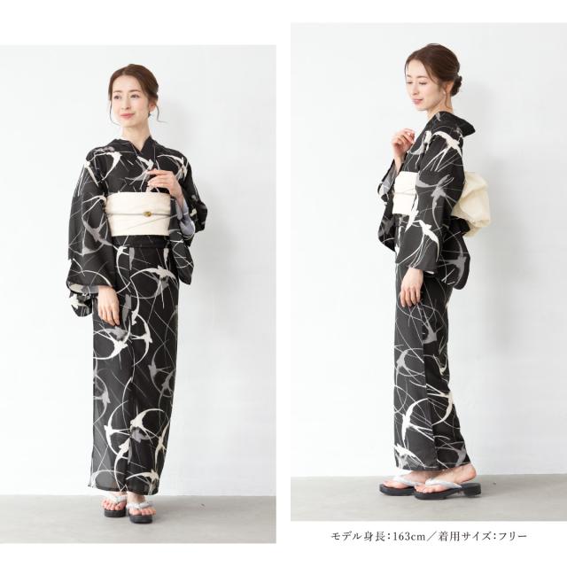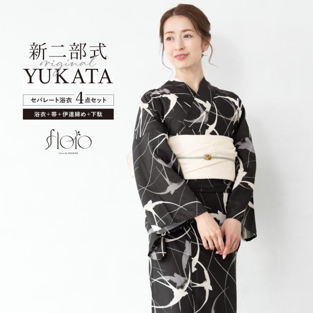 浴衣 セット レディース 二部式 セパレート 浴衣セット 兵児帯 2025 floro 簡単 悩まない 涼しい 黒 白 つばめ 大人 おしゃれ 30代 40代 50代 下駄 フリー 送料無料