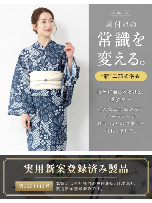 巻きスカートに浴衣型の上着を羽織ることで浴衣に見える二部式の浴衣です。