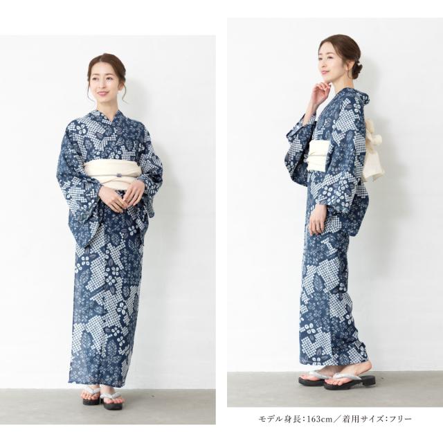 浴衣 セット レディース 二部式 セパレート 浴衣セット 兵児帯 2025 floro 簡単 悩まない 涼しい 紺 白 紫陽花 大人 おしゃれ 30代 40代 50代 下駄 フリー 送料無料