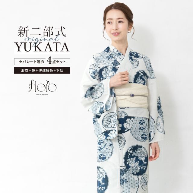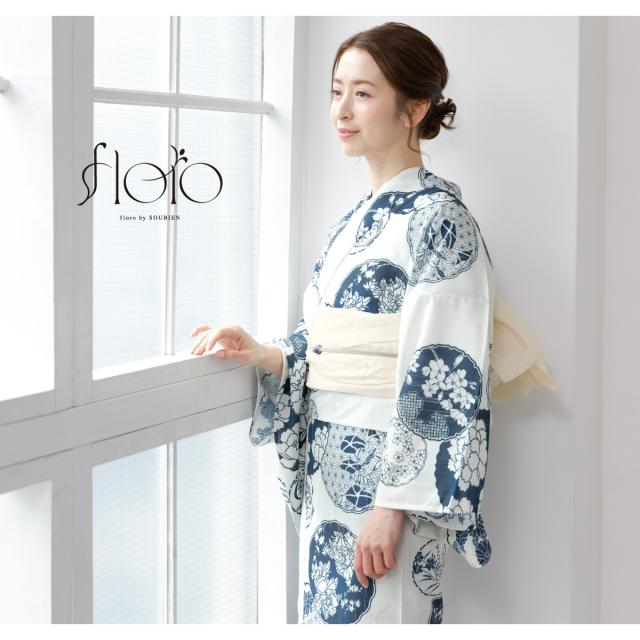 SOUBIENのプライベートブランド『floro by SOUBIEN』(フローロ)の女性用セパレート浴衣4点セットです。