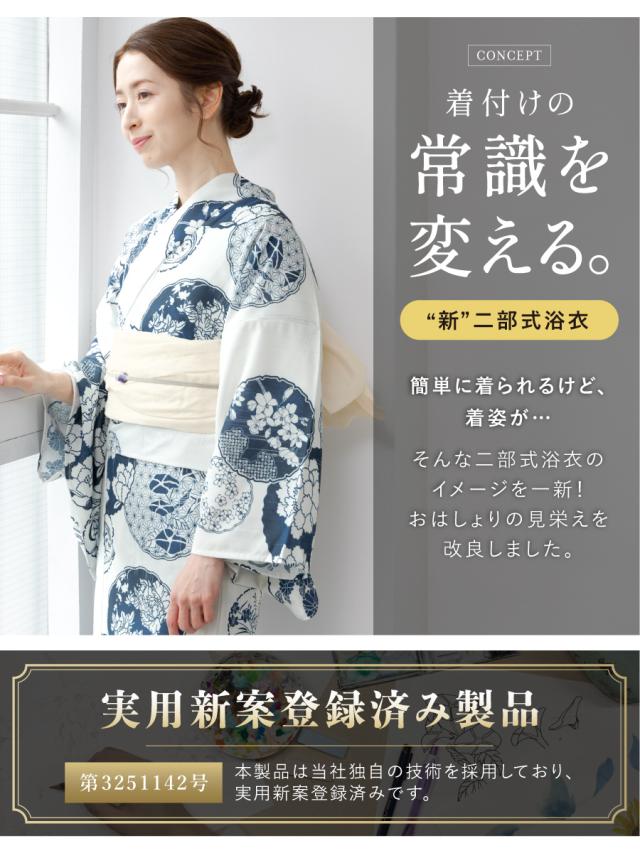巻きスカートに浴衣型の上着を羽織ることで浴衣に見える二部式の浴衣です。