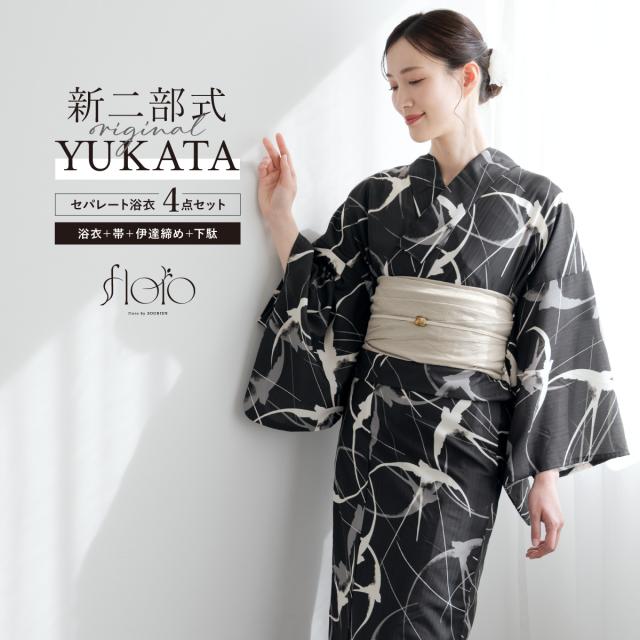 浴衣 セット レディース 二部式 セパレート 浴衣セット 兵児帯 2025 floro 簡単 悩まない 涼しい 黒 白 ベージュ 燕 大人 おしゃれ 30代 40代 50代 下駄 フリー 送料無料