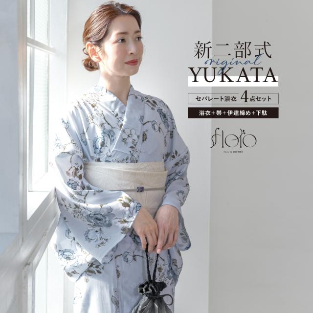 SOUBIENのプライベートブランド『floro by SOUBIEN』(フローロ)の女性用セパレート浴衣4点セットです。