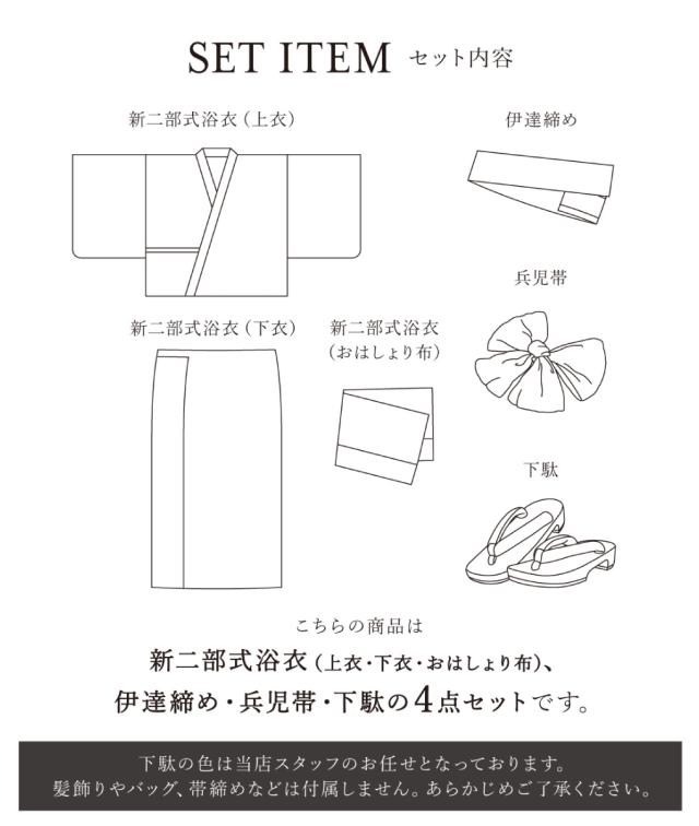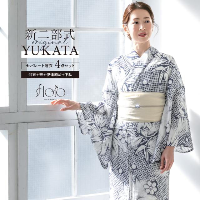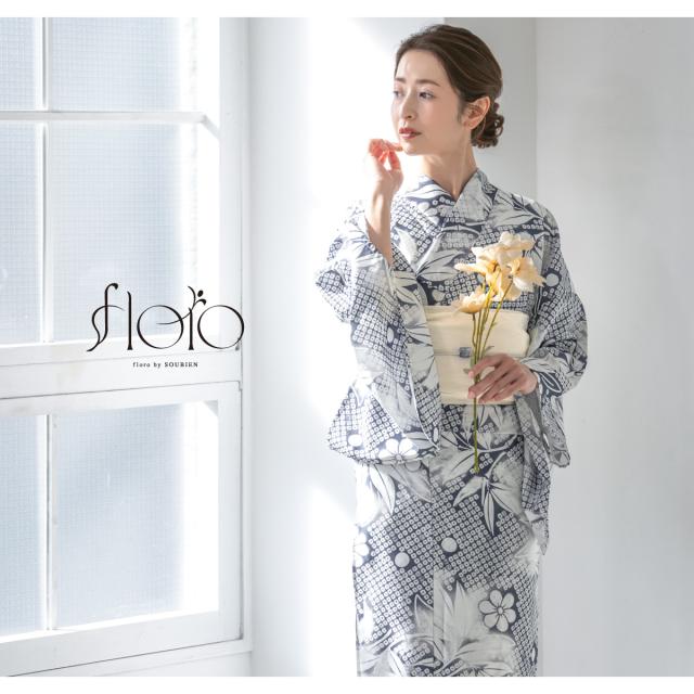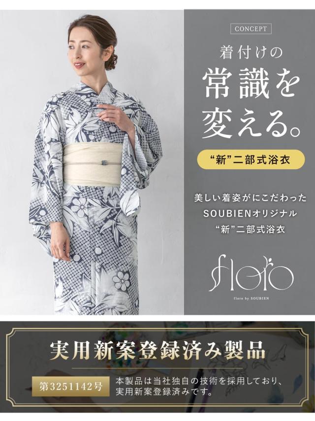 SOUBIENのプライベートブランド『floro by SOUBIEN』(フローロ)の女性用セパレート浴衣4点セットです。