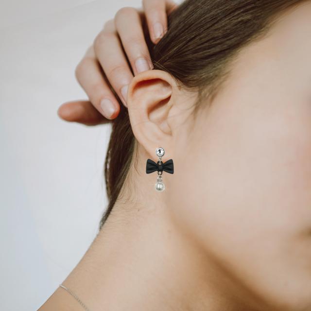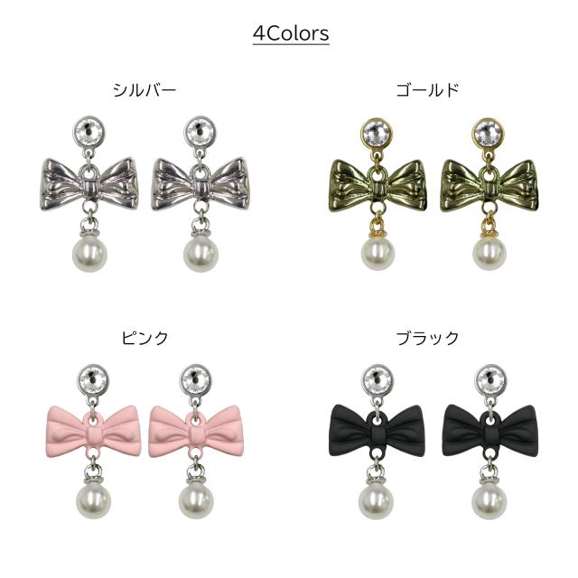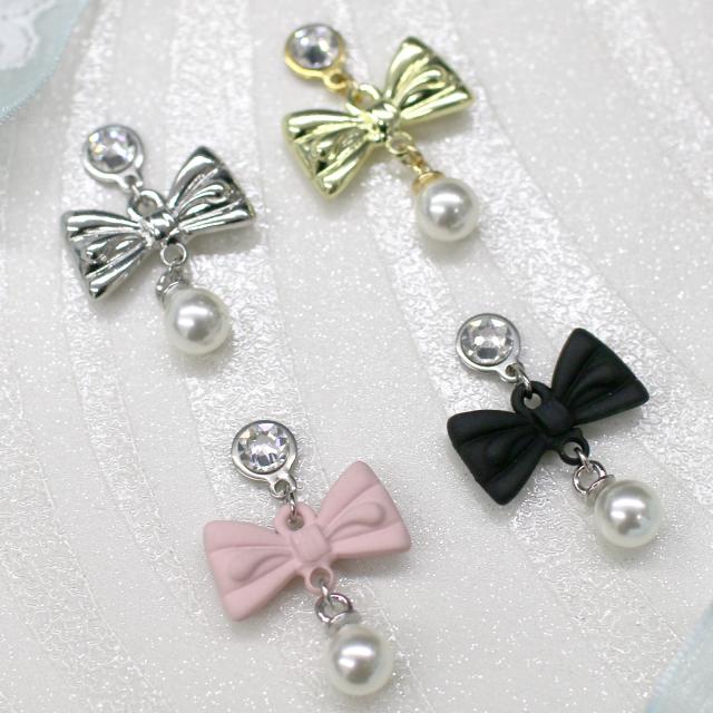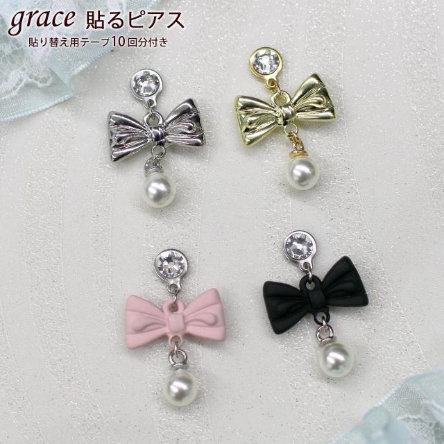 grace貼るピアス リボン×パール ゴールド シルバー 選べるカラー 貼り替えテープ付き ノンホールピアス シールピアス りぼん かわいい キュート アレルギーフリー レディース ピアスシール アクセサリー 痛くない リフィルテープ 貼るだけ