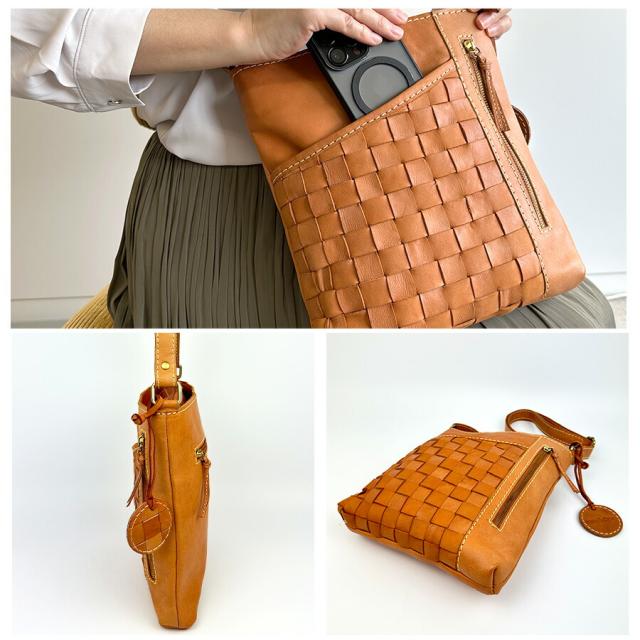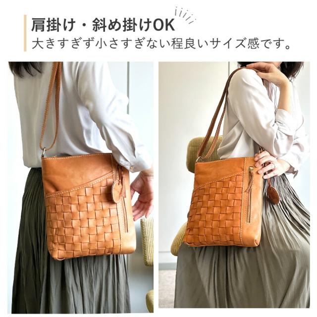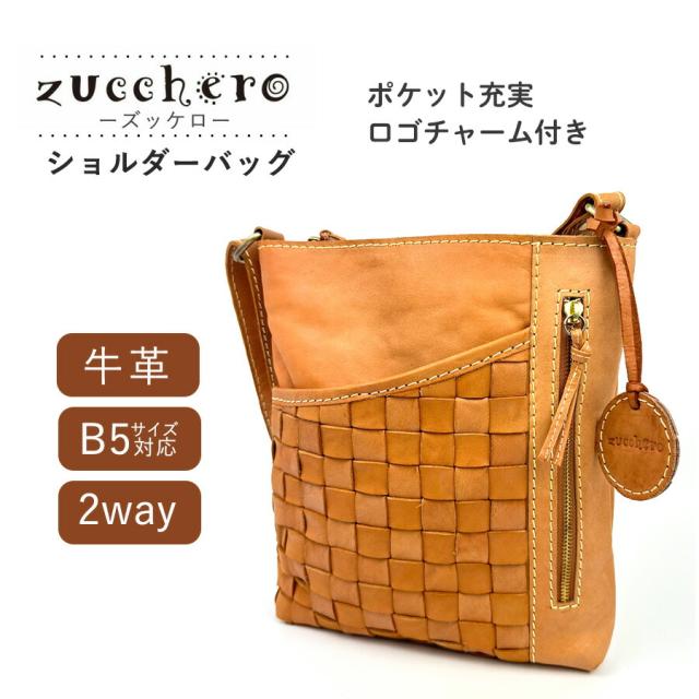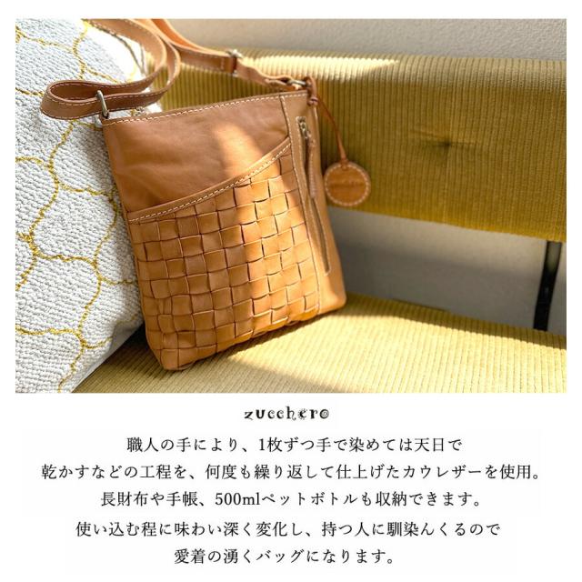 ショルダーバッグ レディース 斜めがけ 本革 おしゃれ ブランド zucchero ズッケロ ヌメ革 牛革 49799 バッグ B5サイズ対応 革 レザーバッグ 編み込み カジュアル シンプル 高級感 大人 女子 女性 ママ お母さん 人気 秋 冬 普段使い 通勤 お買い物 旅行 茶 ブラウン