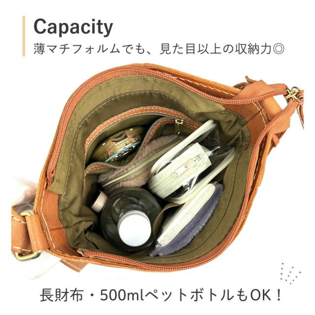 長財布・手帳等ちょっとした小物類から500mlのペットボトル・B5サイズも収納可能。