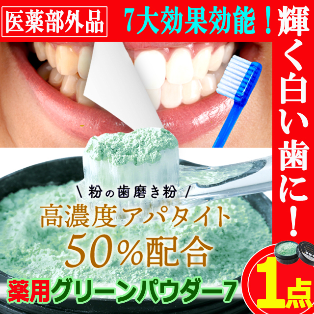 高濃度アパタイト50%配合緑の粉の歯磨き!薬用グリーンパウダー7 1点 歯ブラシ 口臭 歯槽膿漏 虫歯 オーラルケア グリーンミント 医薬部外品
