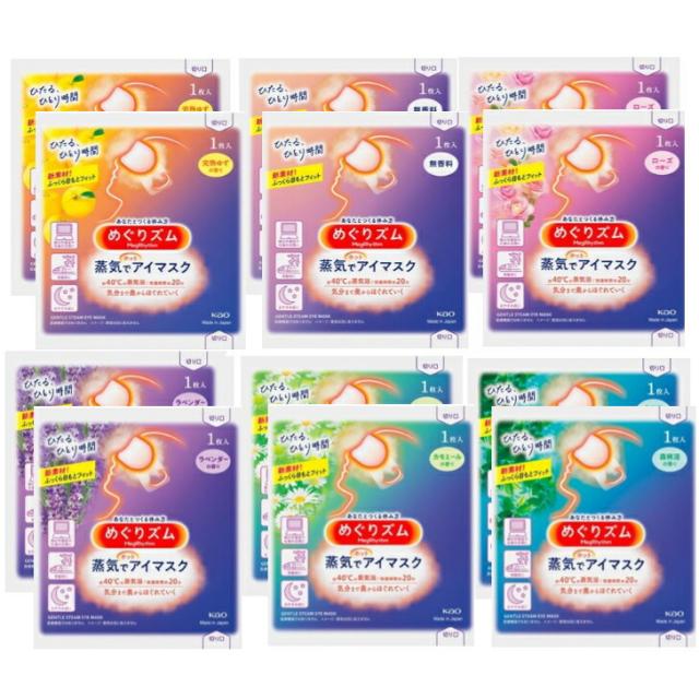 12枚入り 花王 めぐりズム 蒸気でホットアイマスク アソート6種×2包 無香料・カモミール・ローズ・ラベンダー・森林浴・完熟ゆず 青森倉庫