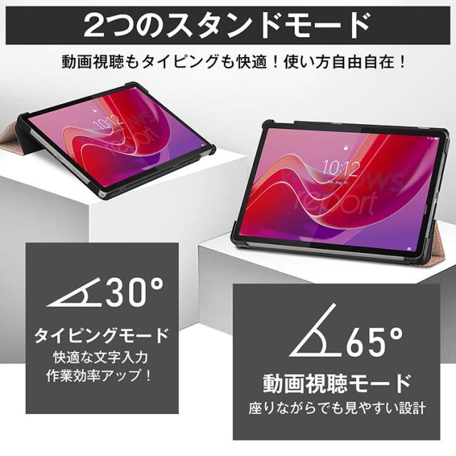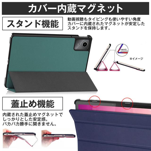強化ガラスフィルム タッチペン付 ドコモ タブレット Lavie Tab T11d / Lenovo Tab B11 / M11 / K11 / LAVIE Tab T11 1155HAS / T1165KAS / TAB11F01 ケース レノボタブ ラビタブ 3つ折り PUレザー タブレットカバー 蓋マグネット内蔵 薄型 オートスリープ機能 耐衝撃