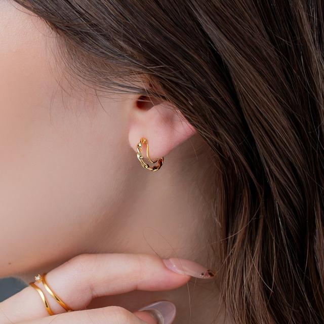 ツイストメタルのフープラインが艶めくワイヤーフィットイヤリング。シンプルで洗練されたデザインが大人に似合うひと品。さりげないサイズ感でデイリー使え、ピアスのようにすっきり見えるオススメのアイテムです。