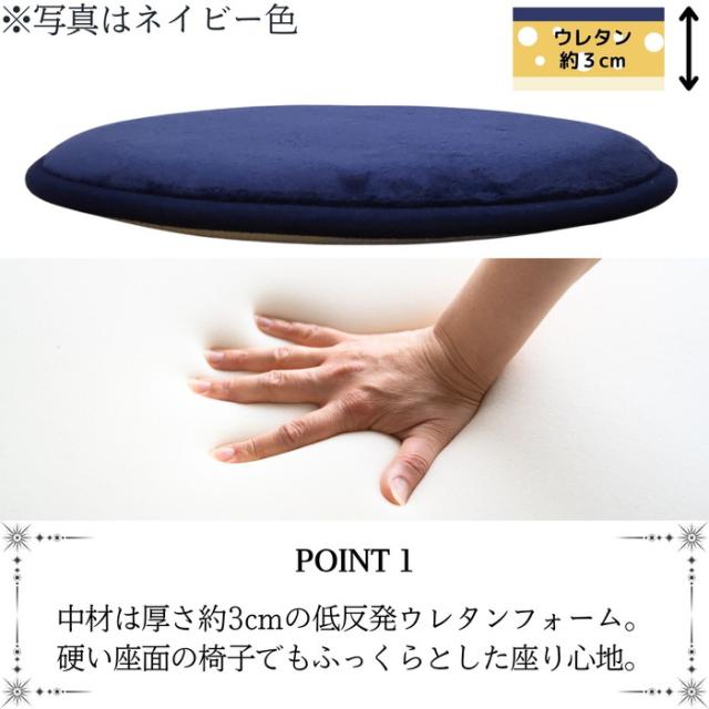 チェアパッド円座 直径35cm ネイビー ボリューム低反発ウレタン 滑り止め付き マイクロファイバー生地