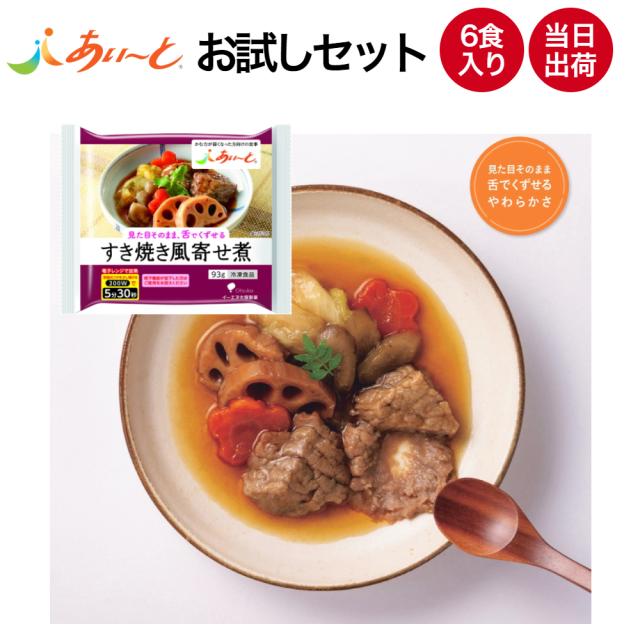 【介護食】冷凍 あいーと お試しセット 6食入り 舌でつぶせる 当日発送 冷凍弁当 冷凍食品 ムース食 ミキサー食 刻み食 ペースト食 惣菜 送料無料