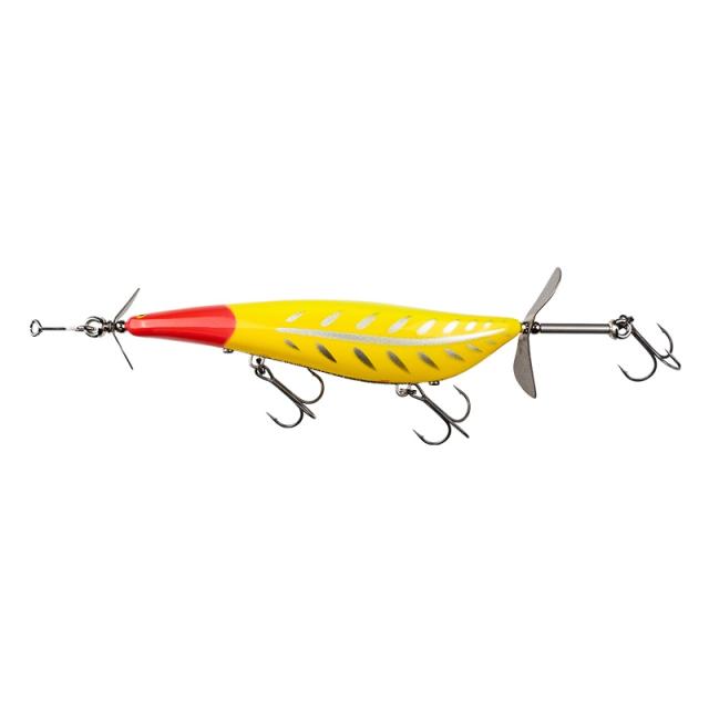 ヨタヨタとアクションしながらブレードとリアプロップが不規則に接触し金属音を発生させ魚に気付かせます。