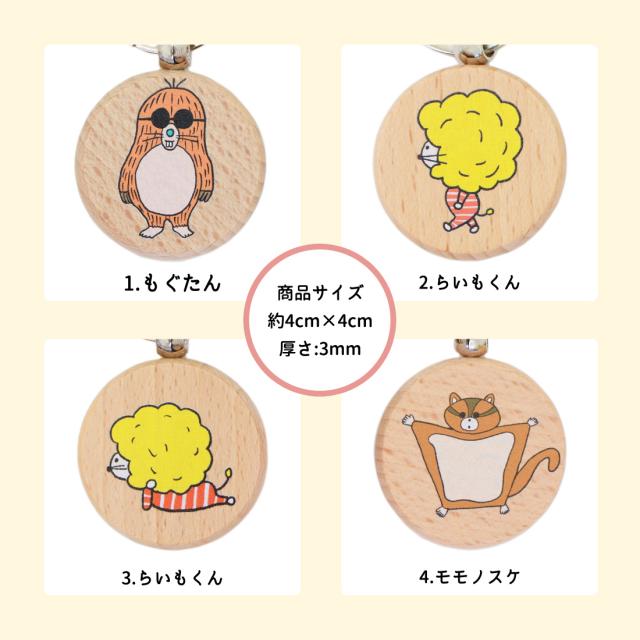 柴田ケイコ 描き下ろし キャラクター キーホルダー NAKAYOSHIMOLIMO 【メール便送料無料】 木製 ヒノキ 天然木 キーリング 鍵 ストラップ 高知産 檜 動物 雑貨 大人 かわいい プレゼント モモノスケ らいもくん もぐたん